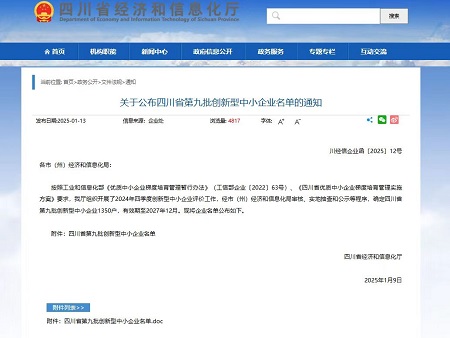 近日,四川省經濟和信息化廳發布《關于公布四川省第九批創新型中小企業名單的通知》(川經信企業函〔2025〕12號),廣元投發礦業集團有限公司成功獲評“四川省創新型中小企業”。