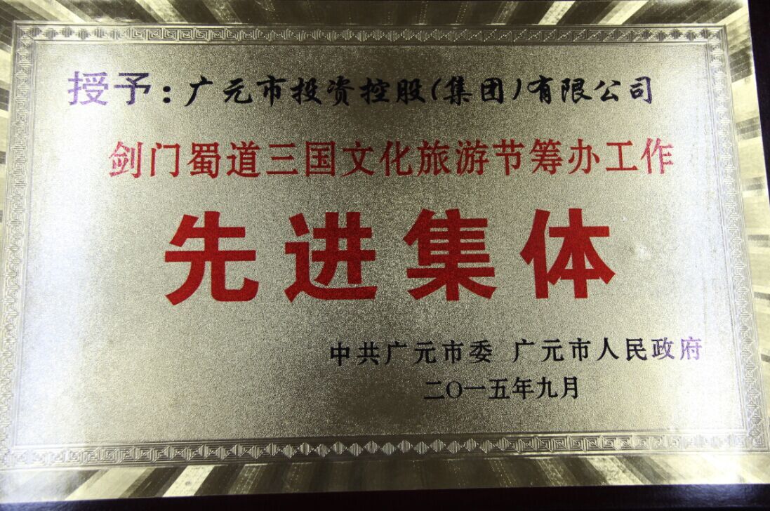 廣元市委、市政府近期對在2015年劍門蜀道三國文化旅游節籌辦工作中表現突出的單位予以表彰,市投資集團榮獲先進集體稱號。